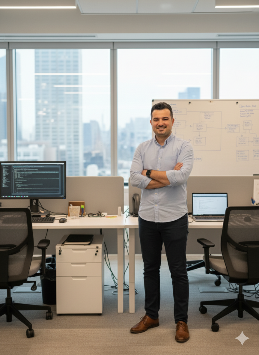 Wij combineren ervaring uit multinationals met de persoonlijke aanpak van een klein team. Zo vertalen we complexe digitalisering naar haalbare oplossingen die echt werken voor jouw KMO.